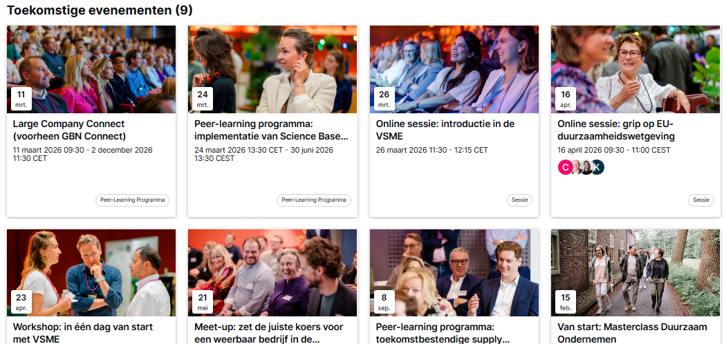Uiteraard netwerken we volop. Van een community voor boardroomleden tot netwerkbijeenkomsten; kom naar onze events om samen duurzaam zaken te doen. De hele agenda vind je op onze online community.