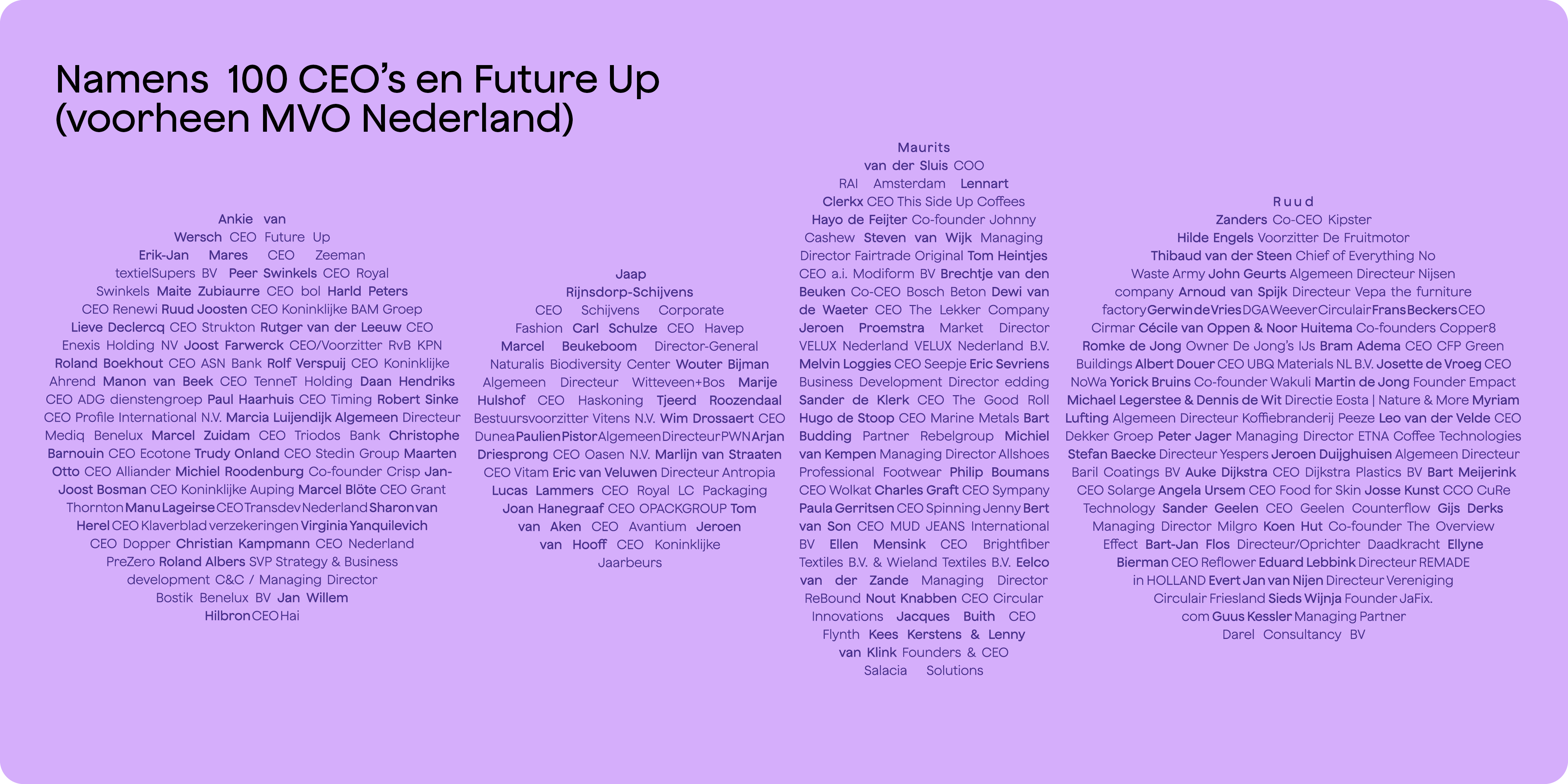 Namens 100 CEO’s en Future Up (voorheen MVO Nederland)