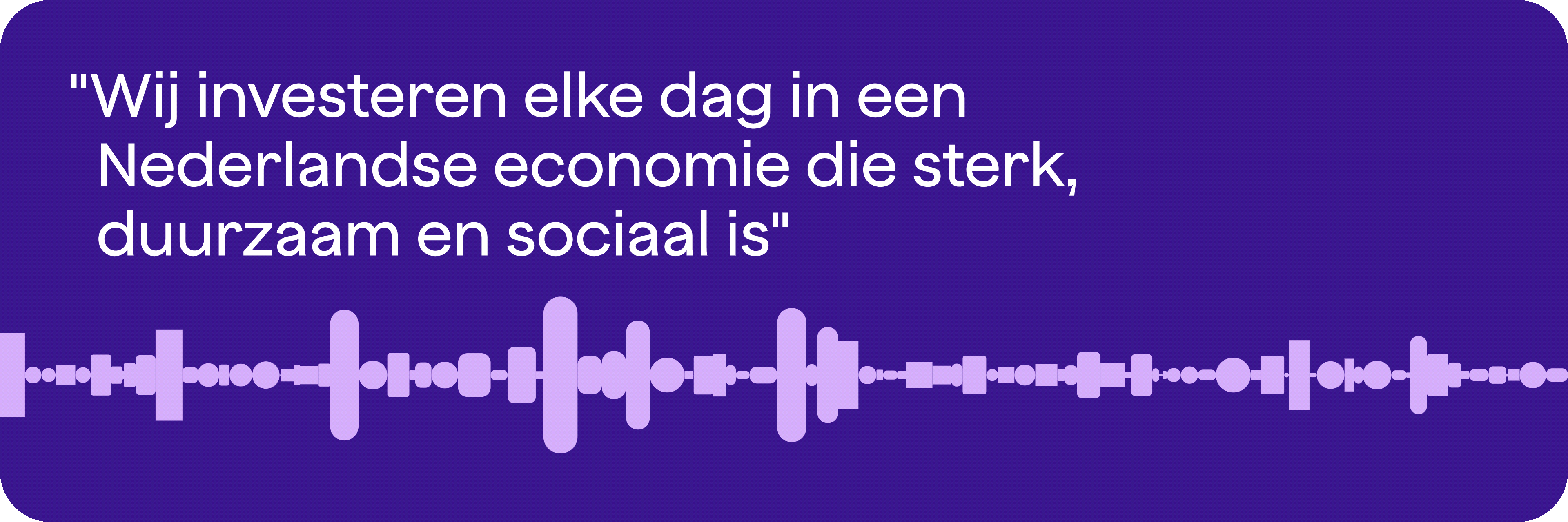 Wij geloven dat brede maatschappelijke winst de enige winst is die standhoudt. Dat waarde voor de samenleving ontstaat met verantwoordelijk leiderschap. Daarin zijn we nog niet perfect. Jullie mogen ons daar scherp op houden, dat helpt ons vooruit.