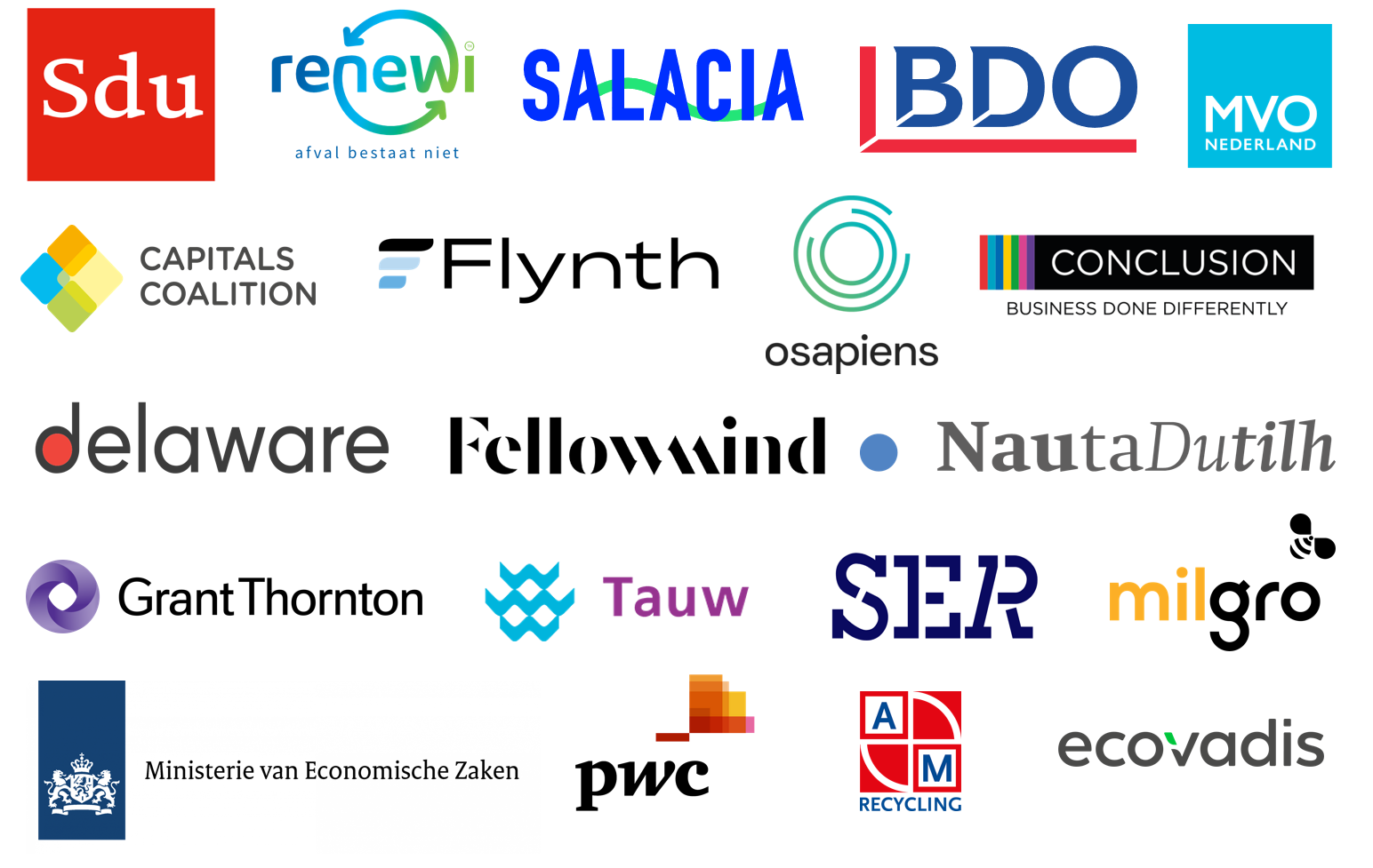 Voor CSRD-DAY2 werken we samen met hoofdsponsors Sdu, Renewi en Osapiens. En met kennispartners BDO, SER, Conclusion, Flynth, Salacia Solutions, A&M Recycling, Capitals Coalition, Fellowmind, NautaDutilh, Delaware, Grant Thornton en meer.
