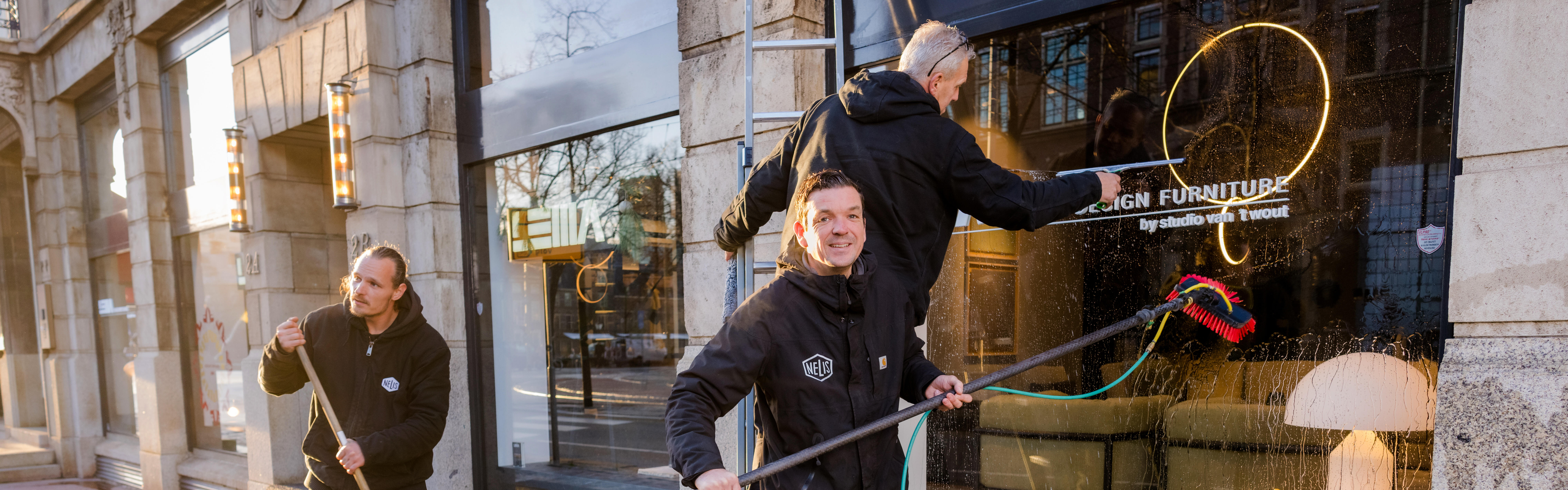 Het succes van Nelis Company begon ooit bij het enthousiasme van oprichter Ian: “Ik groeide op in de Schilderswijk in Den Haag. We hadden het thuis niet breed, mijn ouders gingen vroeg uit elkaar en de buurt zat vol criminaliteit en drugsgebruik. Ik heb de ene na de andere jongen zien afglijden – ondertussen groeide ik op met opa Nelis, de operazingende glazenwasser, maar vooral een bevlogen vakman. Altijd was ‘ie bezig, wat ervoor zorgde dat ik mijn eerste stappen letterlijk onderaan die ladder heb gezet. Ook daarna weet ik niet anders dan dat ik elke schoolvakantie ramen stond te zemen om het thuis financieel rond te krijgen.”